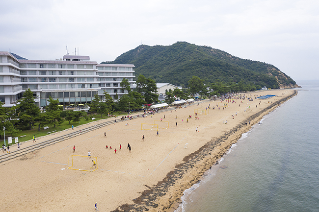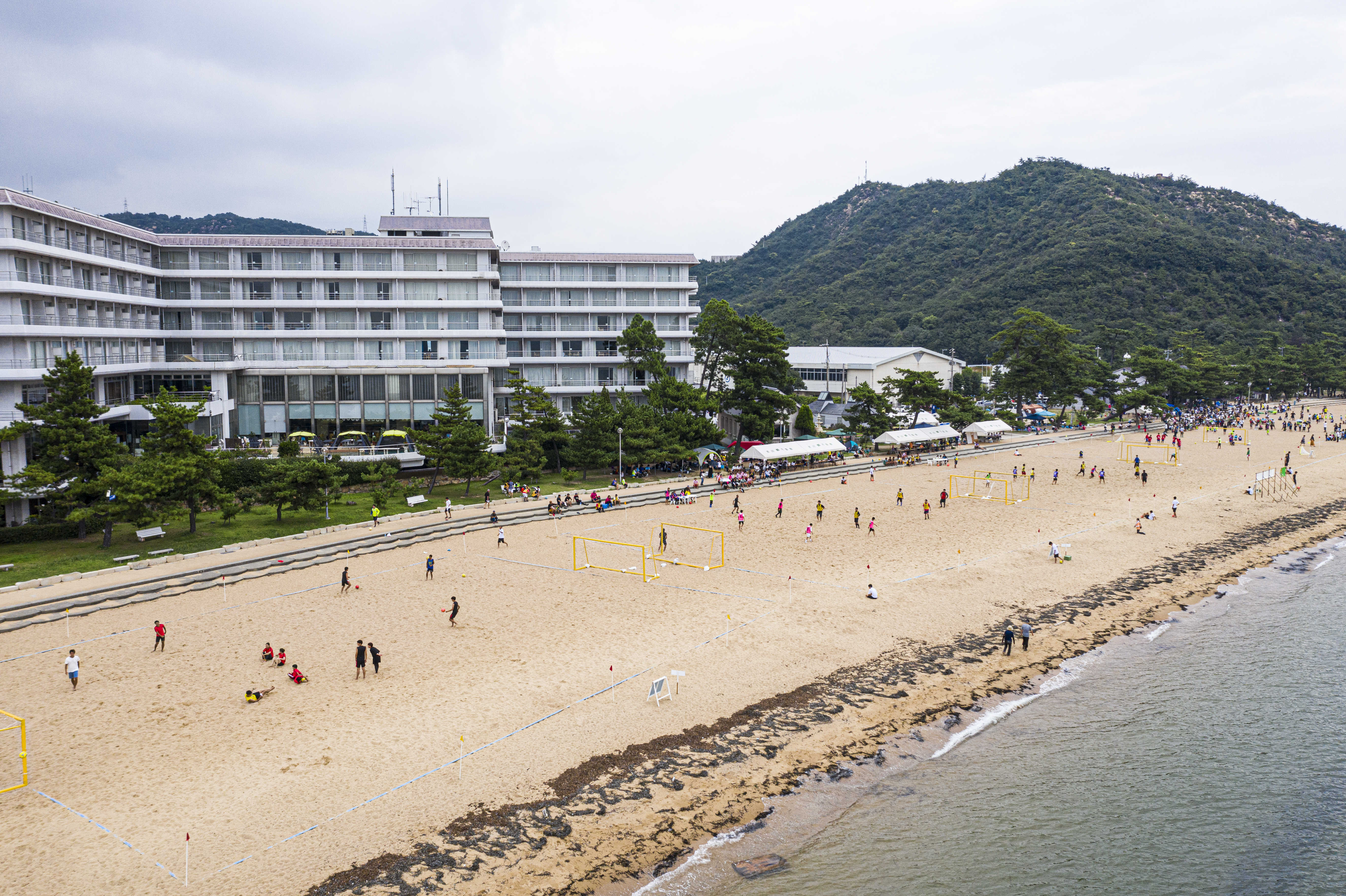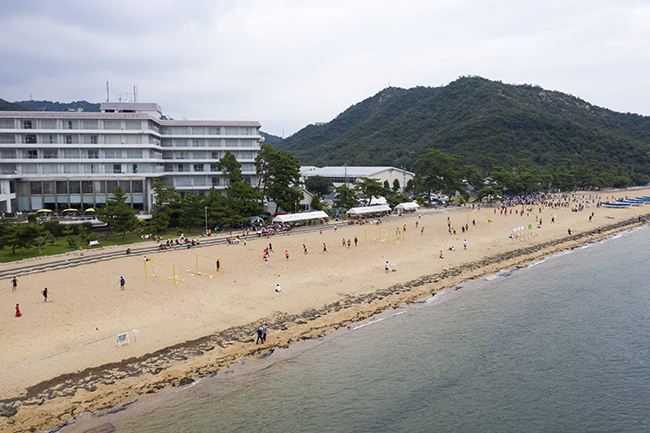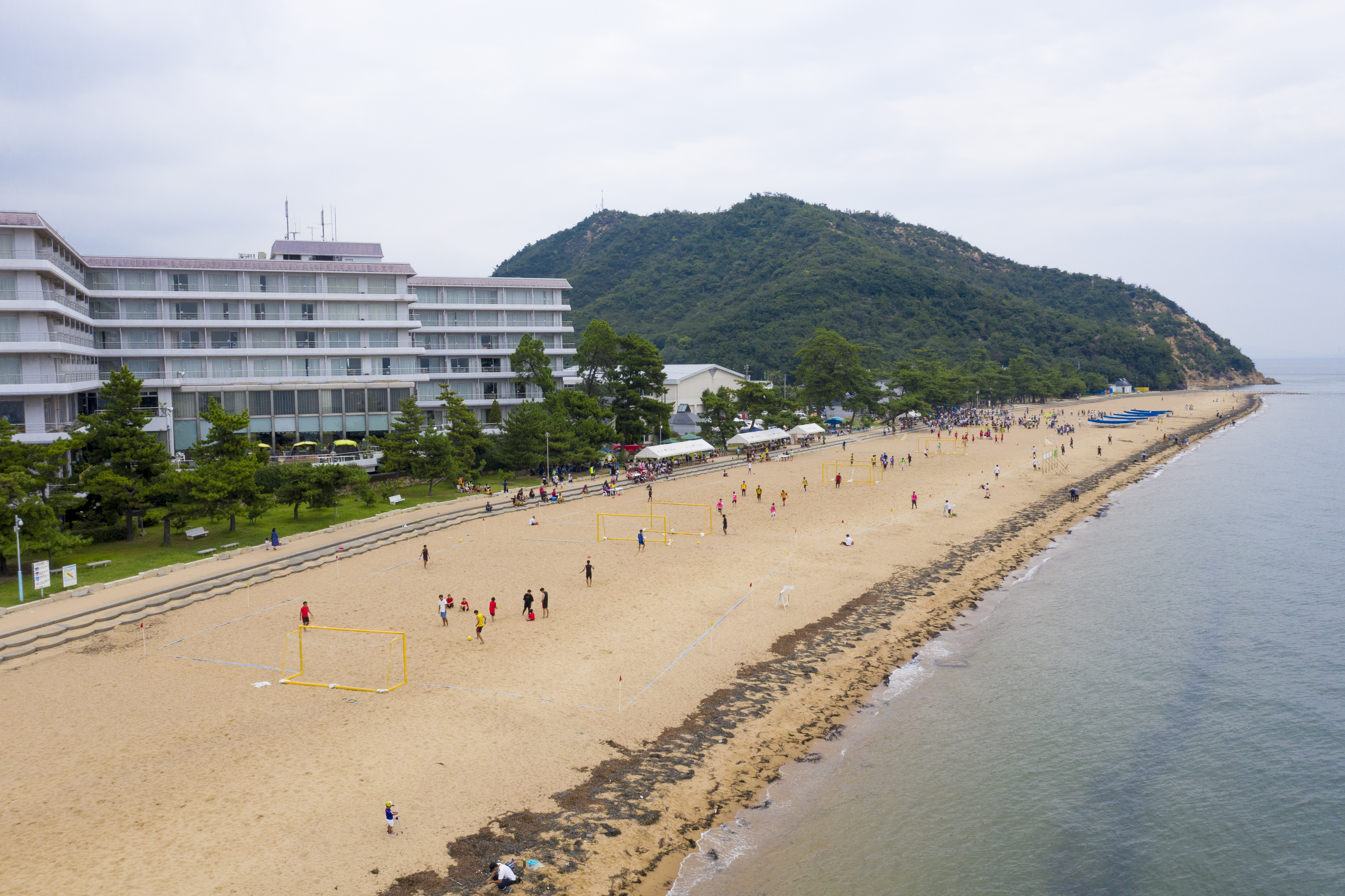 2019年9月1日、玉野市 渋川海岸で行われた「第14回たまの渋川ビーチサッカー9月大会」の様子を「DJI MAVIC 2 PRO」で海上から撮影しました。