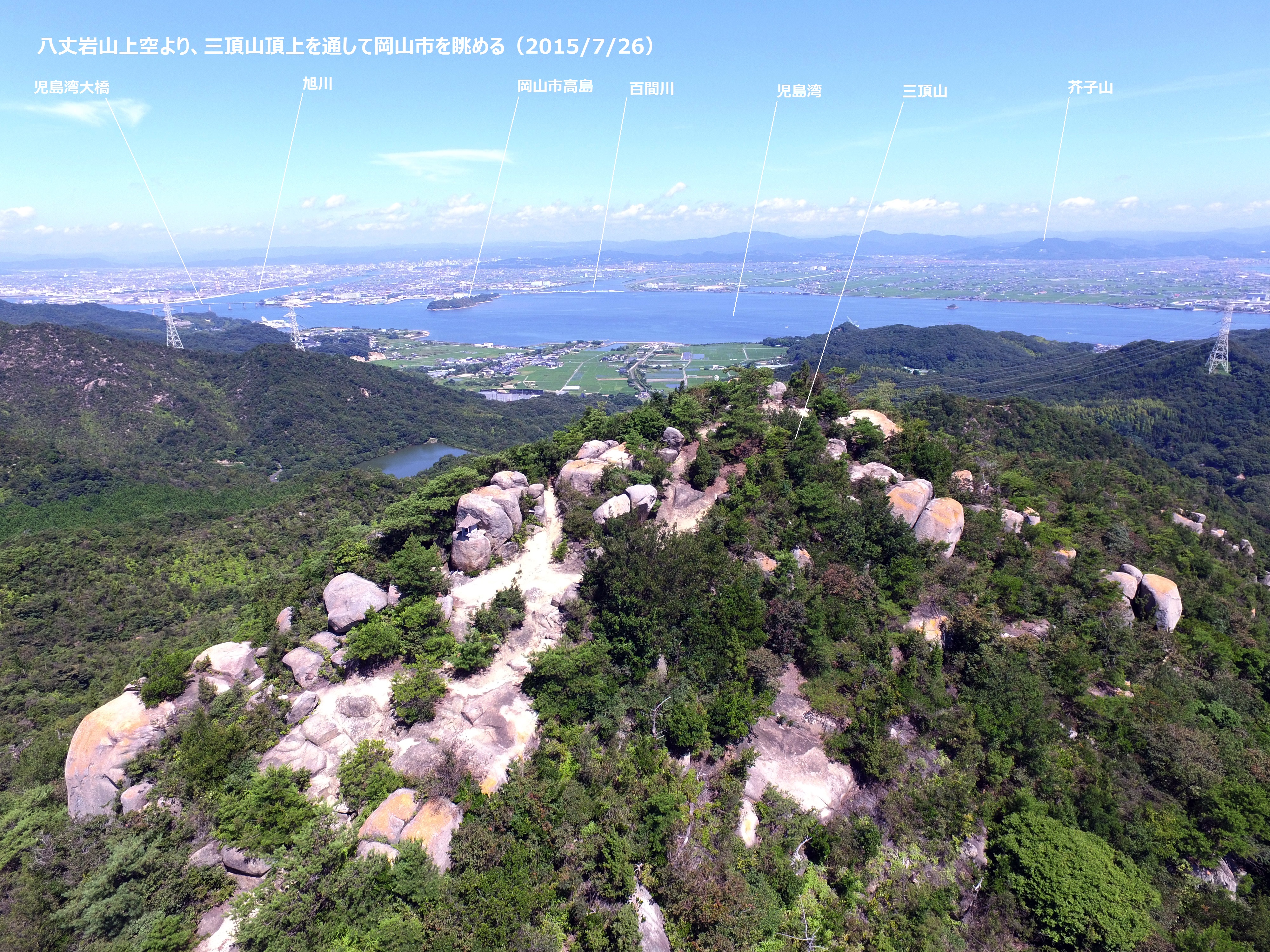 2015/7/26、岡山市八丈岩山から北方(児島湾、岡山市方面)を「DJI Phantom 3 Professional」で撮影しました。
