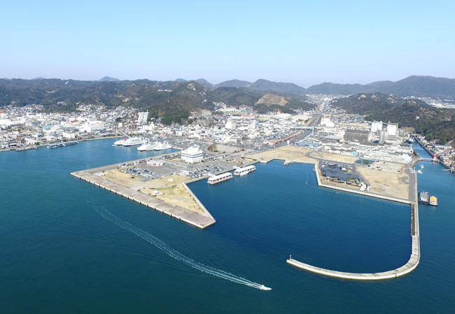 「宇野港第一突堤」は、一昔前まで「宇高フェリー・連絡船」の発着場として知られていましたが、今では延長280m、水深10mの大型旅客船バースとなり、「CRUISE PORT UNO」と呼ばれています。