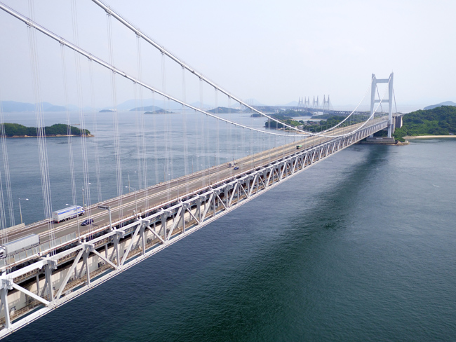 遠方に瀬戸大橋(瀬戸中央自動車道)が写っています。