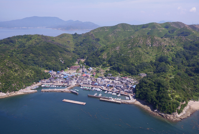 石島の人口は103人(2011年、wikipedia)、島北部の写真に写っている集落(岡山県側)に全員住まわれています。
