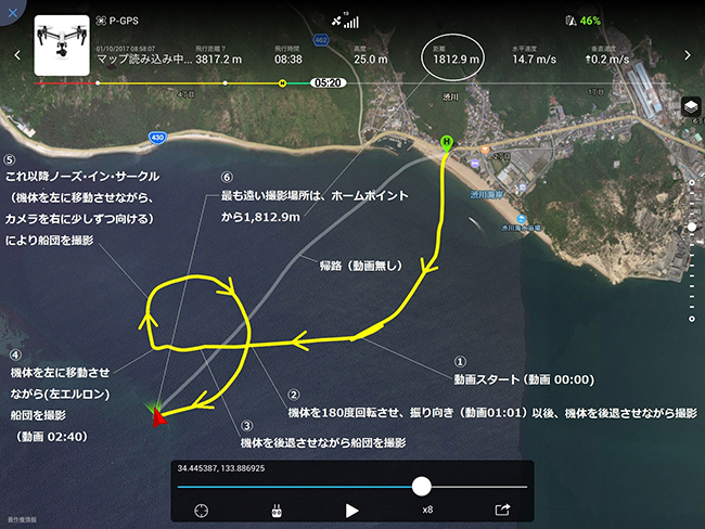 掲示した動画は、「高清水高原」における「DJI MAVIC 2 PRO」による「Point of Interest」と呼ばれる飛行方法です。